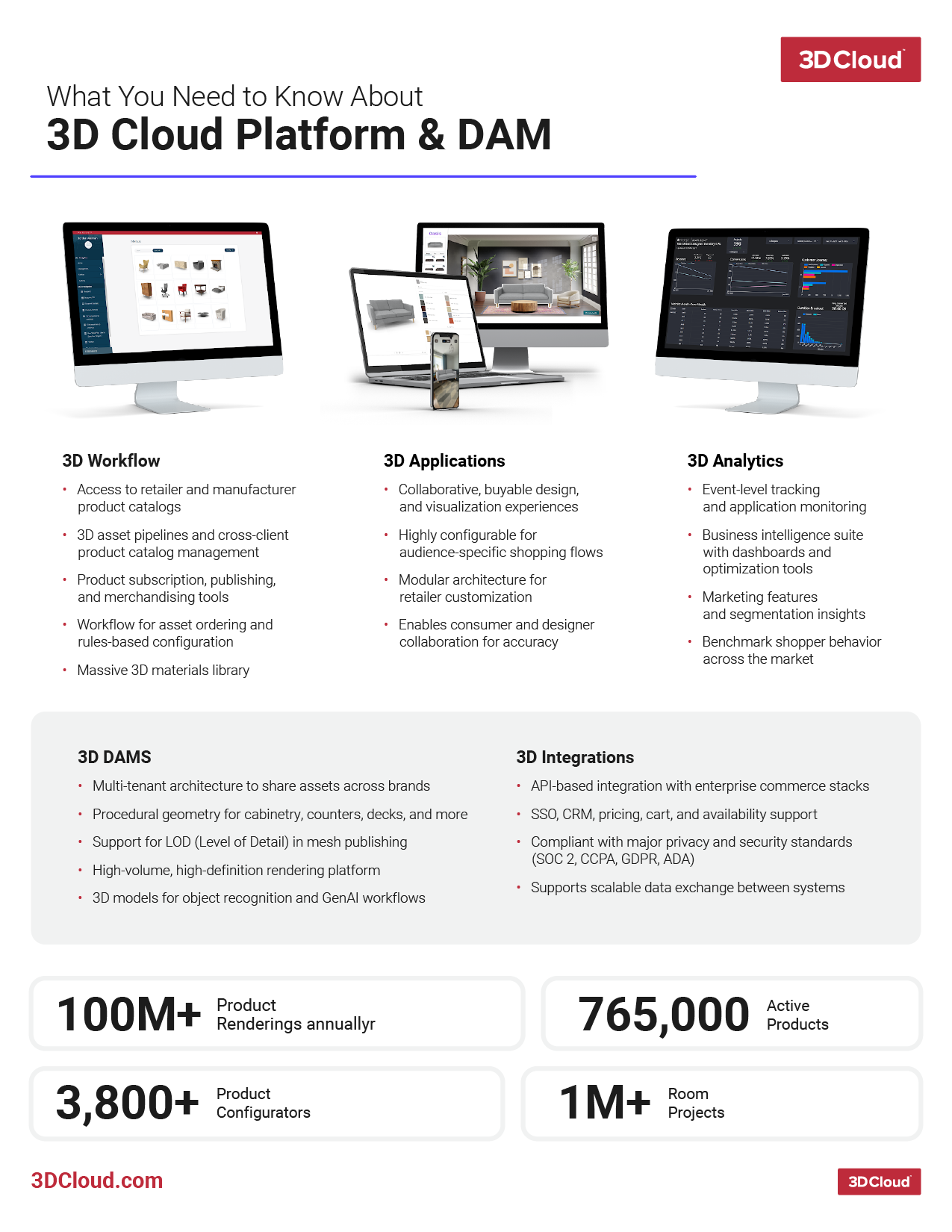 3D Cloud manages millions of products and billions of variants for leading home improvement and furniture retailers and manufacturers worldwide.