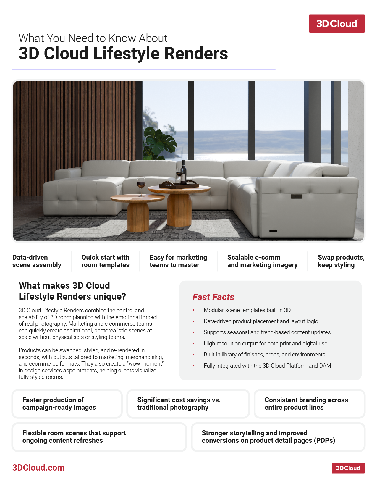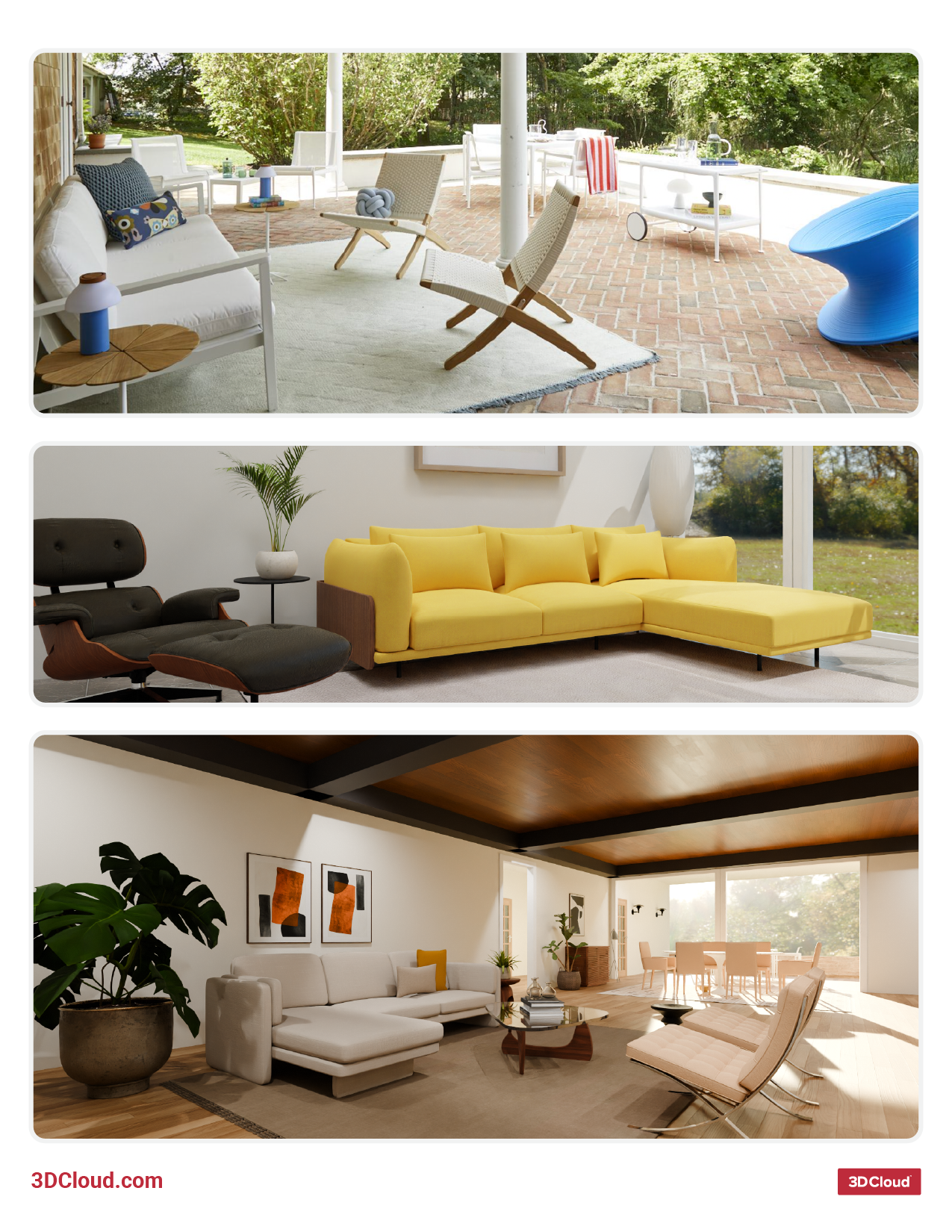 Elevate your product pages with instant 3D Cloud Product Renders. Tailor backgrounds, product angles, colors, and materials on the fly – all without a CGI vendor. Custom presets and bulk export makes it fast and easy to scale visual content production. Included in the 3D Cloud Furniture Solutions Bundle.
